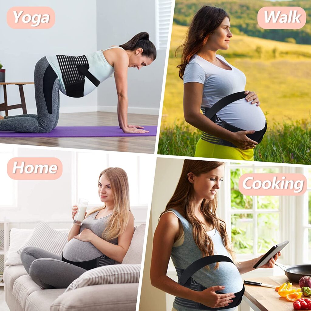 - Correctly distribute the weight around your hips and pelvis, so your belly gets a good support