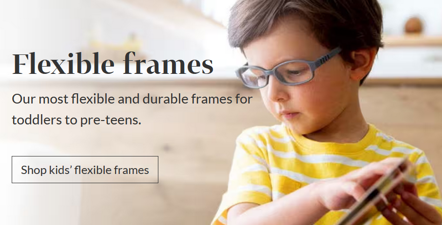 Frames should fit well on children and not be able to peep over the top. They should also be durable enough to withstand your child’s movements. Bands can be worn to keep them on, which is particularly good for active children.