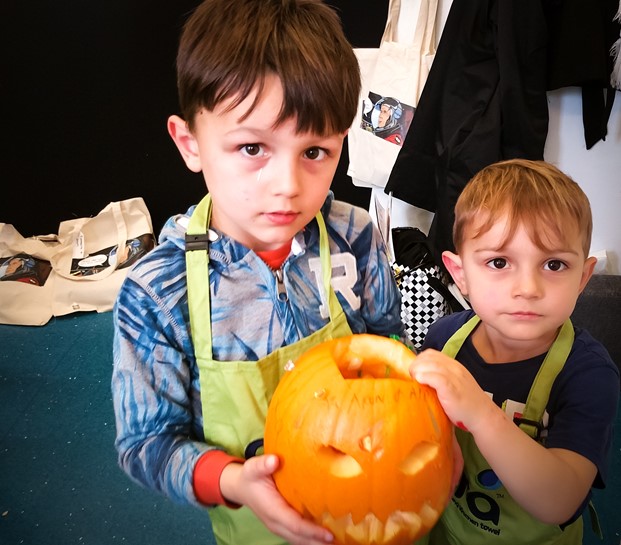 The boys hung onto her every word on how to prepare the pumpkin, by scooping out the nasty bits and carving a face to bring it alive.