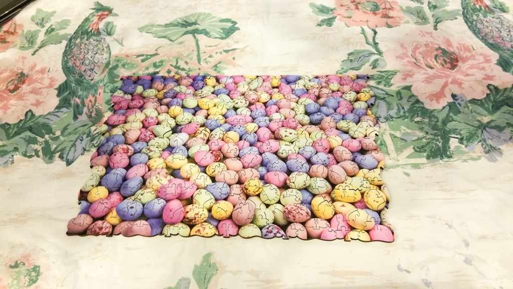 Egg-xtra difficult Wooden Jigsaw (A tessellation of chocolate mini eggs)