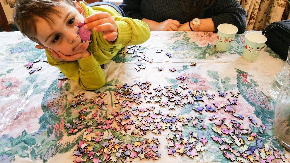 It took three adults and two children, four hours to complete the 260pc jigsaw puzzle. That was because it took us about an hour to figure out how the pieces fit together. I’m not too sure how children alone would have the concentration span to sit down and complete this puzzle by themselves, so I think this is more of a family Easter activity. So deceivingly small, this jigsaw was, indeed, egg-stremely difficult for even us three adults and the boys did fabulously well to stick at it. The wooden pieces are strong and sturdy, which, I believe, is brilliant for the boys’ quality control testing of biting and bending normal jigsaw pieces, until the picture falls apart and we’re left with a grey puzzle piece. So, I definitely would recommend Wentworth Wooden Jigsaw Puzzles, not just for their unique and innovative approach at whimsy themed jigsaw puzzles, but for their high quality and brilliant imagery, which captivate even those with short attention spans.