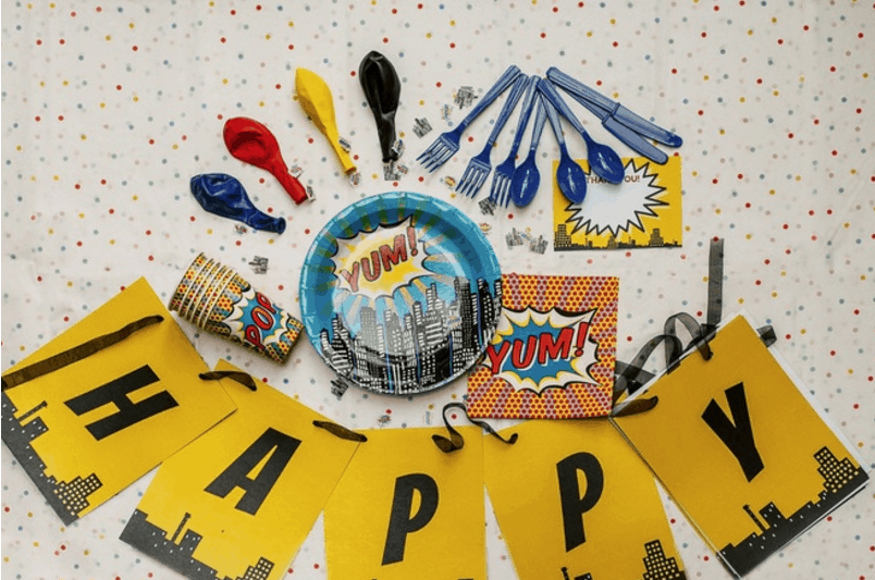 So, all the major party components have been sorted out and now you have to think about the little embellishments that will make the party stand out. Items like tableware, party banners, and balloons etc can all be theme related and you may save money if you buy a tableware set, rather than the individual items. But, theme-related tableware does come at a premium, so if you’re pinching pennies, just head to the major supermarkets and buy bold coloured tableware that matches the base of the theme. For example, my son’s 5th birthday party will have a PJ Masks theme, but as I have not managed to find any PJ Masks-specific tableware, I have just opted to go for royal blue as the main colour of the party supplies and I have saved a huge chunk of money doing this.