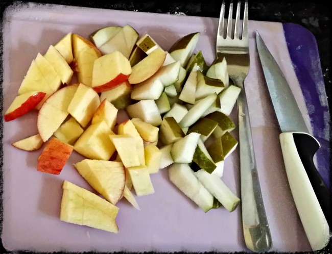 Chop the fruit up into bite sized chunks and add to a pan of about 4 tablespoons of water
