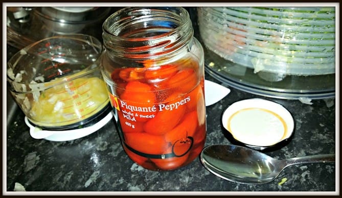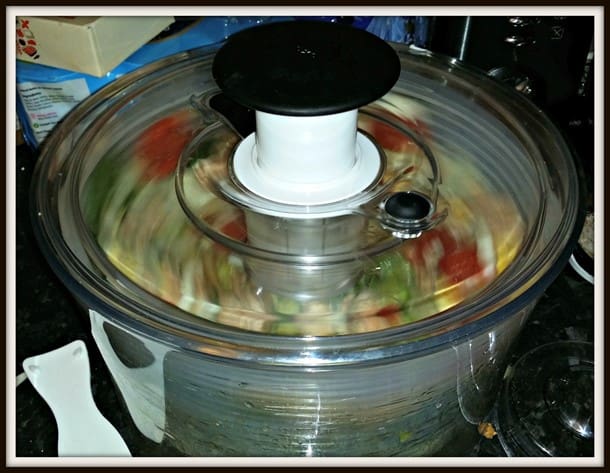 Add 10 Piquante Peppers from their jar to the Good Grips Salad Spinner. Be sure to keep some of the juice in the jar for the salad dressing!