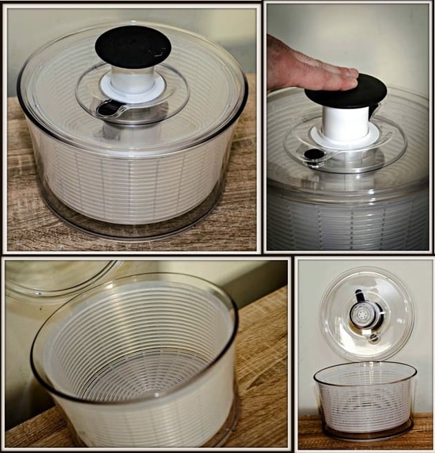 It has been more than 15 years since OXO introduced their first OXO Salad Spinner and the most noticeable difference is the shape of the bowl, which has a wider base, flat top and an elegant look. The non-slip ring on the base has been redesigned to do an even better job sticking to the counter when spinning at top speed. The flat top of the Spinner makes storage much more convenient in either the refrigerator or cupboard. To allow for more greens or berries to be dried, the size of the pump mechanism has been reduced to accommodate more arugula or frisee. For ultimate convenience, the underside of the lid comes apart with the simple press of a button to clean all surfaces. In addition, OXO reengineered the built-in break to work like car brakes and stop almost instantaneously. The Spinner features a soft, non-slip knob that activates the pump mechanism and is available with a green or clear basket.