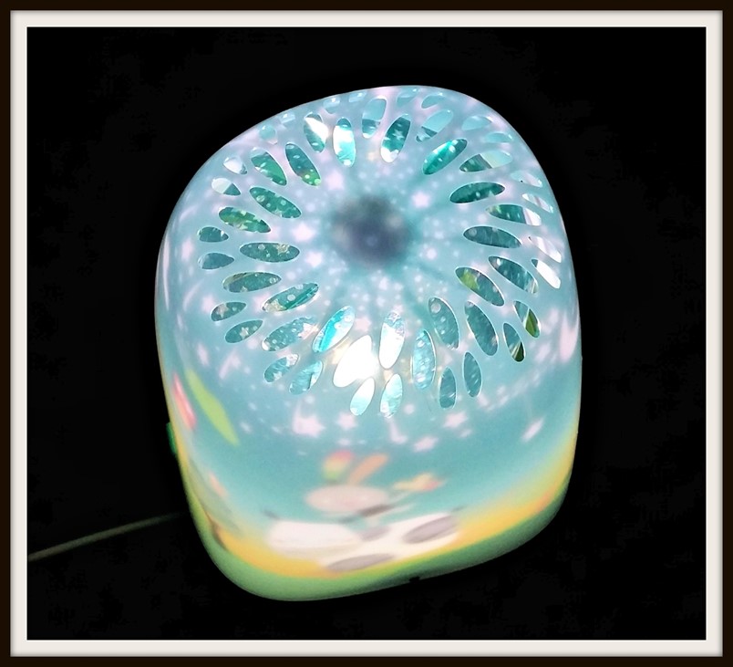 There are three different audio settings on the Dream Theater. One short push and the lights turn on. Second short push and the Dream Theater plays a very sweet, relaxing lullaby that even lulls me into sleep, and the third short push brings about animal sounds (mainly birds), which I found a little annoying. When you hold the button for at least 5 seconds the Dream Theater turns off, but the music naturally turns off after 15 minutes and then the product itself after 45 minutes, so this setting would be quite useful for those, like my eldest, who likes silence to go to sleep, but needs some visual stimulation to switch off his mind. My youngest loved the lullaby, and none of us liked the ‘sounds of nature’.