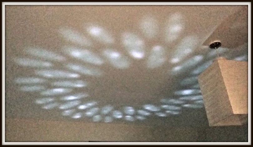 The result is a rotating groups of light that circulate slowly around the ceiling.