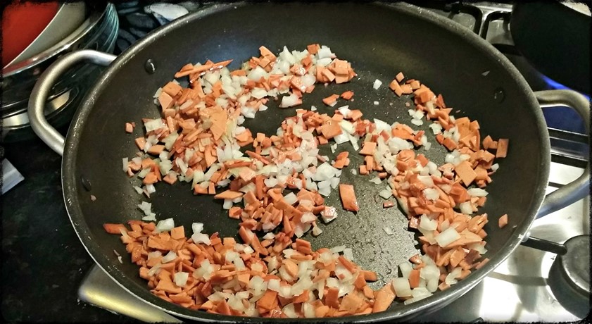 - Trim, dice and brown bacon.