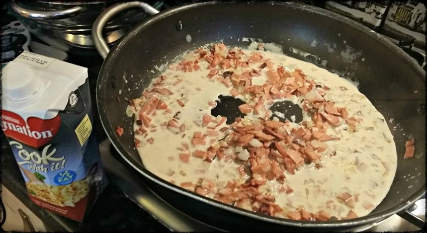 Pasta Carbonara – using Carnation Cook with it! Crème