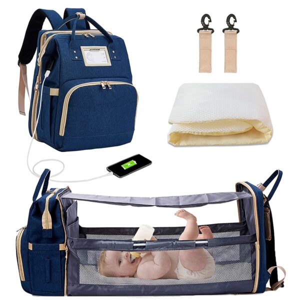 Check out the article where the Diaper Backpack with Changing Bed, 3 in 1 Travel Diaper Bag with Changing Station, Water Resistant Portable Baby Bag with Bassinet, Blue Foldable Diaper Crib (Bag + Crib + USB) is featured by clicking on the link below!