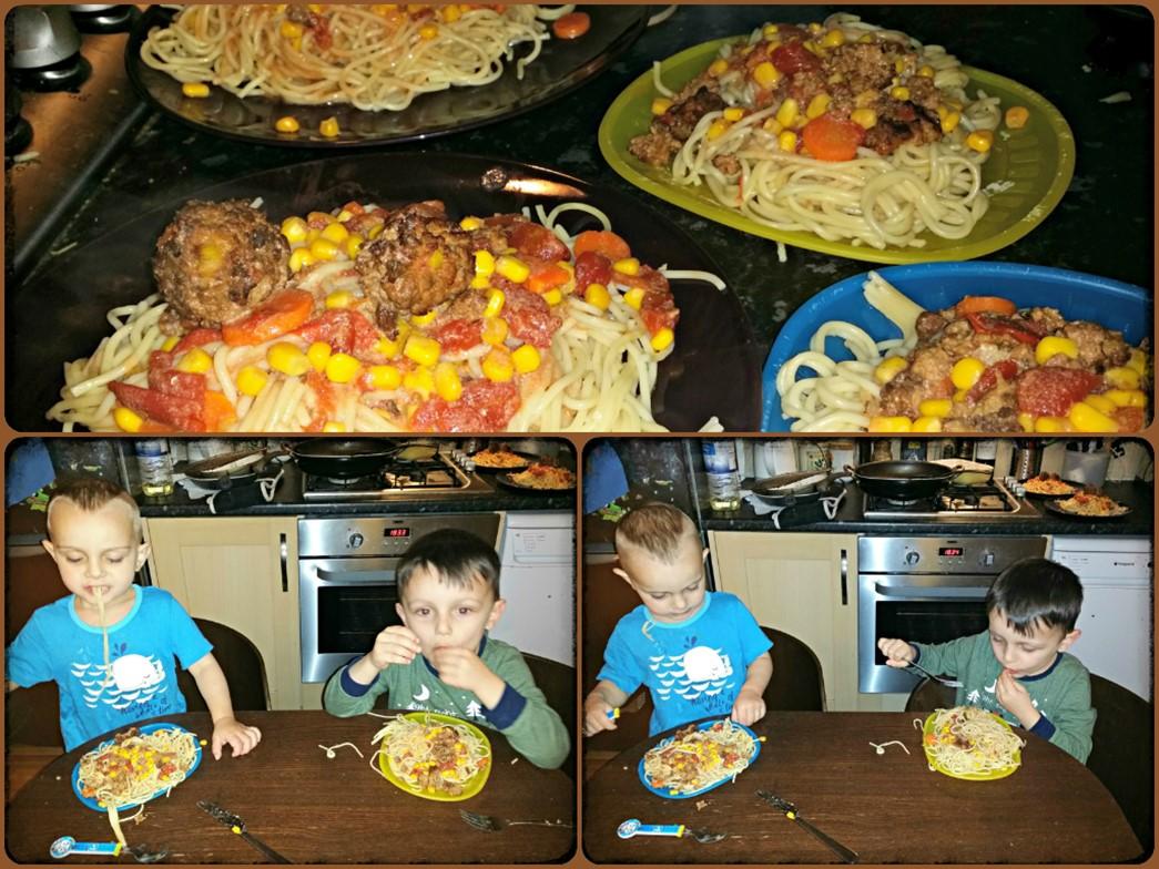 My boys’ all-time favourite meal is anything with spaghetti – I can pretty much slip most “ugh!” vegetables into the spaghetti sauce and they will munch away happily. (Just a side note: I always tell them all the ingredients that are in the sauce, so they get to know the flavours and, hopefully, enjoy them later). I figured the best way to encourage the boys to try Quorn was to shape the mince into something they’d eat with spaghetti.
