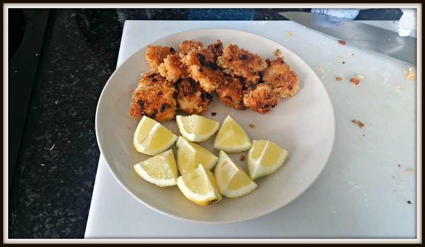 As part of the recipe, A healthy Twist on Traditional Fish and Chips, we made some salmon goujons, covered in panko breadcrumbs, lemon and sundried tomatoes, which Nick believes to be a very healthy and equally gorgeous way to bread fish or chicken for the family. I was amazed at how quickly you could prepare these goujons and pan fry them in literally 5 minutes! Perfect for the busy parent.