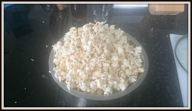Now, I normally like my popcorn sweet or salted, but I’ve never tried salt and vinegar popcorn before and I felt like I had missed out all these years. I absolutely love very salty and vinegary fat chips, so of course I was going to love salt and vinegar popcorn. I make popcorn all the time at home for the boys as they are huge popcorn lovers like I am, so I knew how to make popcorn quite well. Simply add 100g of popcorn kernels to a heated and oiled pan and close the lid tightly, shaking regularly to separate the kernels and holding the lid closed when the popcorns pop up inside the pan. As soon as the popping subsides, you take the pan off the heat and into a large bowl.
